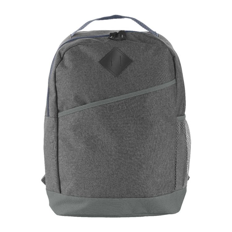 Rucksack aus Polycanvas (600D), mit RV-Hauptfach, Fronttasche mit Klettverschluss, Tragegriff, seitlichem Netzfach, Aufhängeöse und gepolsterten Schultergurten.
