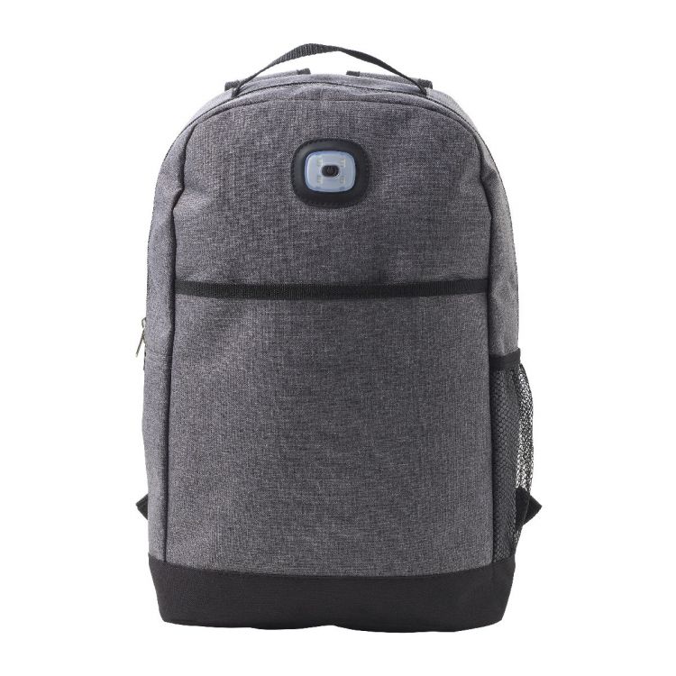 Rucksack 'Dover' aus Polyester (300D + 210D) mit verstellbaren und gepolsterten Schultergurten, gepolstertem Rückenteil, großem RV-Hauptfach, RV-Fronttasche, Netzfach und batteriebetriebener COB-Leuchte mit zwei Leuchtfarben (weiß und rot).