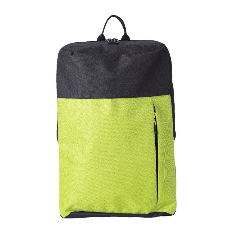 Rucksack aus Polyester (600D) mit Hauptfach und Vordertasche mit Reißverschluss. Die Schultergurte sind gepolstert und verstellbar.