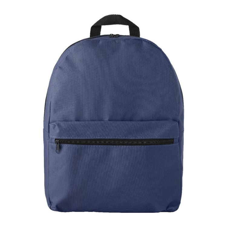 Rucksack aus Polyester (600D) mit Reißverschluss am Hauptfach und Vordertasche. Die Tasche hat verstellbare, gepolsterte Schultergurte.