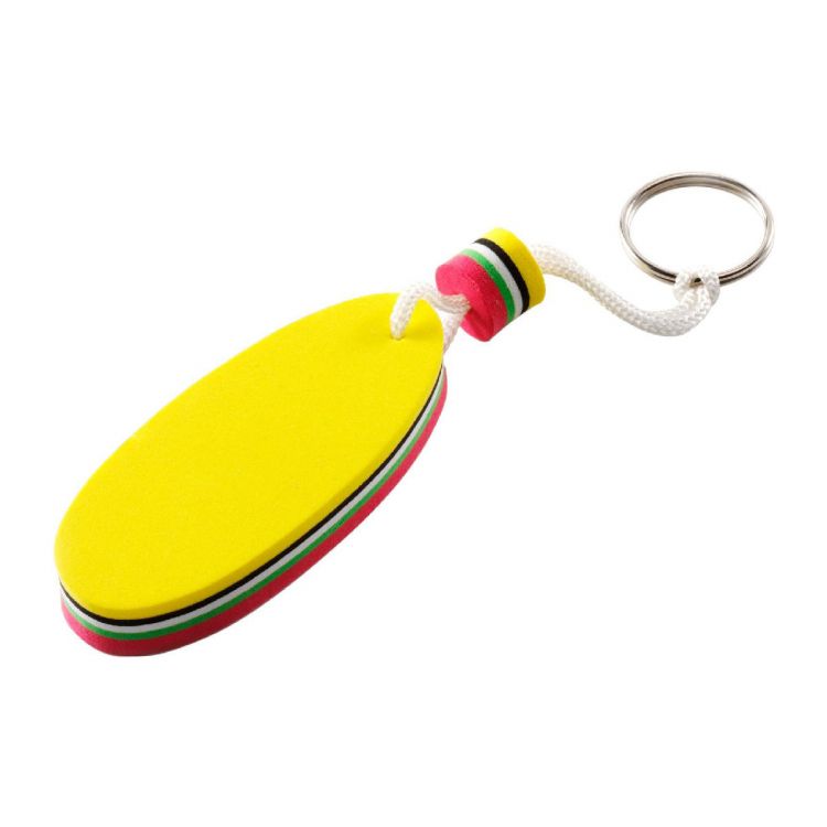 Schlüsselanhänger aus EVA in ovaler Form, wassertauglich, mit Metall-Schlüsselring. Artikel kann nur in Schwarz, Weiß, Silber oder Gold bedruckt werden