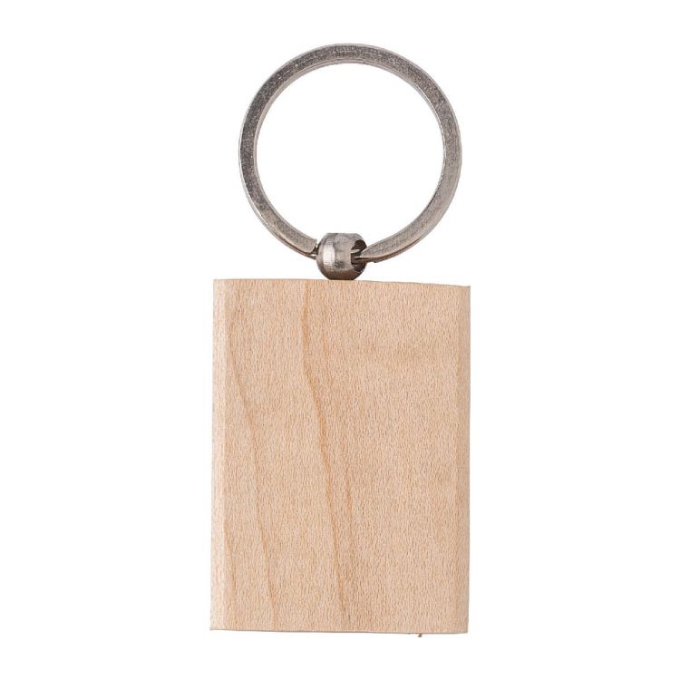 Schlüsselanhänger eckig aus Holz mit Metall-Schlüsselring.
