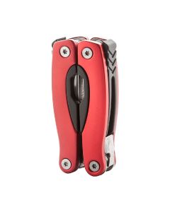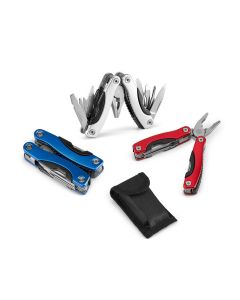 MultiwerkzeugMultitool mit robustem Gehäuse aus Edelstahl mit 12 Funktionen. Enthält ein flasches Messer, ein gezahntes Messer, Schraubendreher, eine Feile, einen Öffner und eine Zange. Hergestellt in leuchtenden Farben und präsentiert in einer robusten Polyesterhülle in einer individuellen Box.