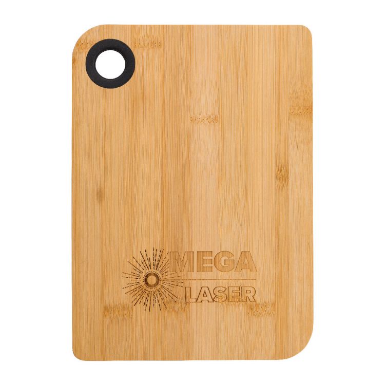 Schneidebrett aus Bambus 'Steven'. Das Loch für den Daumen ist umrandet mit einem Silikonring.