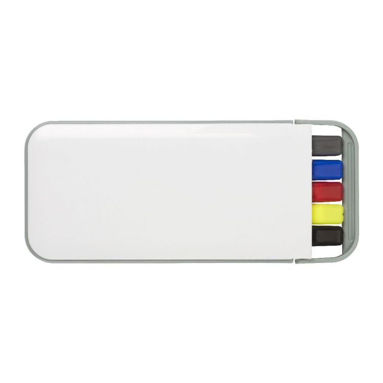 Schreibset aus Kunststoff, bestehend aus drei Kugelschreibern, einem Druckbleistift und einem Textmarker.