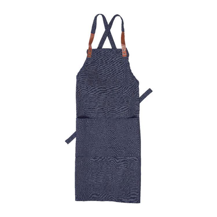Schürze aus Denim (280 g/m2) mit Schulterriemen und zwei Fronttaschen. Der Jeansstoff besteht aus 65% Polyester und 35% Baumwolle. Diese Schürze hat keinen Nackenriemen, sondern nur Schulterriemen. Die Farbechtheit des Denims beträgt bis zu 2-3 Stufen. Einzeln verpackt in brauner Geschenkbox.