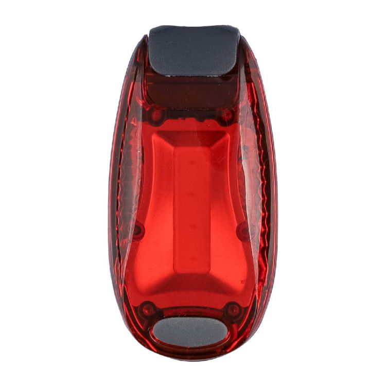 Sicherheitslicht mit zwei Einstellungen: konstant und blinkend, mit Befestigungsclip und Klettverschluss um das Licht zu befestigen.