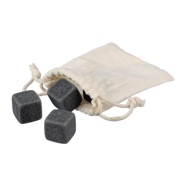 Eiswürfel aus Stein, Satz von 4 wiederverwendbaren Natursteinen. Steine müssen zum Abkühlen in den Kühlschrank gestellt werden. Verpackt in einem Baumwollbeutel mit Kordelzug.
