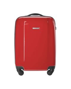 Reisetrolley aus 600D und EVATrolley aus 600D und EVA mit halbstarrer Vordertasche und gefüttertem Innenraum. Auf der Rückseite befindet sich ein Identifikationsetikett. Dieser Trolley hat einen ausziehbaren Teleskopgriff aus Aluminium mit Fede, eine Kapazität bis zu 28 L und ein Gewicht von 2,95 kg, in rot farbe