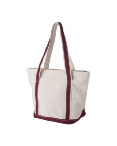 TascheTasche aus robuster 280g/m2 Baumwolle. Abgenäht, mit Zwickel und 50 cm langen, verstärkten Griffen in Seilform. Erhältlich in einer breiten Palette von zweifarbigen Farben, mit einem Gewicht von bis zu 10 kg.