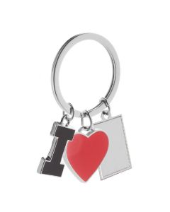 SchlüsselanhängerMetall-Schlüsselanhänger mit 3 Anhängern: "I", Herz und Rechteck. Einzeln in schwarzer Geschenkbox