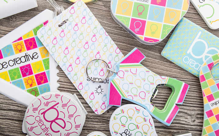 Der UV-LED-Druck kann für Gegenstände aus Metall, Glas, Holz, PU-Leder, Kunststoff und Pappe verwendet werden. auf ebenen und runden Flächen. Es gibt viele Artikel mit diesen Eigenschaften: Wasserflaschen, Thermoskannen, Stifte, Lineale, Notizbücher, Powerbanks und vieles mehr.